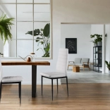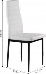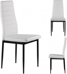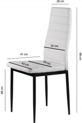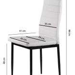 Nasz zestaw krzeseł do jadalni został zaprojektowany tak, aby idealnie uzupełnić Twoje wnętrze. Biała tapicerka z ekoskóry i proste czarne nogi tworzą stylowy i nowoczesny design, który pasuje do każdego typu aranżacji.
