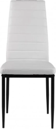 Białe tapicerowanie z ekoskóry oraz czarne nogi nadają krzesłom elegancki i nowoczesny wygląd, który łatwo dopasować do różnych stylów aranżacji.