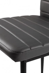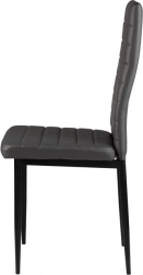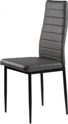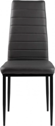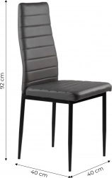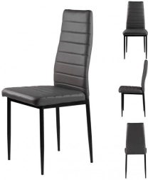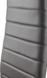 Zestaw czterech krzeseł doskonale uzupełni Twoją jadalnię lub salon dzięki nowoczesnemu wzornictwu z elementami ergonomicznymi. Szare obicie z ekoskóry z poziomym przeszyciem nie tylko świetnie wygląda, ale też zapewnia maksymalny komfort siedzenia. Czarne metalowe nogi gwarantują stabilność i trwałość.