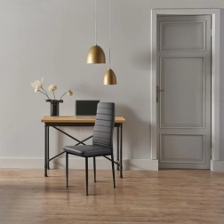 Połączenie szarej ekoskóry i czarnych metalowych nóg nadaje krzesłom elegancki i nowoczesny wygląd, który pasuje do każdego wnętrza.