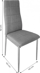 Ten zestaw 4 tapicerowanych krzeseł zapewnia nie tylko styl, ale i wygodę. Dzięki wysokiej jakości, przyjemnej w dotyku tkaninie oraz nowoczesnym wykończeniom krzesła doskonale pasują do rodzinnego stołu w jadalni i kuchni.