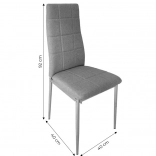 Elegancki zestaw 4 tapicerowanych krzeseł jest idealny do każdej nowoczesnej jadalni lub salonu. Krzesła mają wysokie, ergonomicznie wyprofilowane oparcie, wysokiej jakości wypełnienie oraz nowoczesny szary design, który doda uroku każdemu wnętrzu.