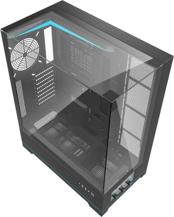 Ciesz się czystym widokiem na wnętrze zestawu i efekty świetlne. Hartowane szkło podkreśla estetykę oraz porządek w okablowaniu.