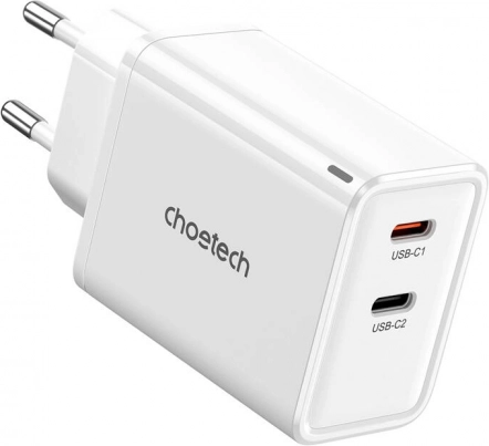 Choetech GaN ładowarka sieciowa 65 W, 2× USB‑C (biała)