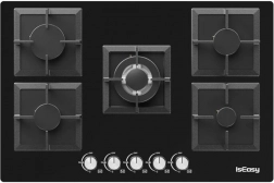 Szklana kuchenka gazowa IsEasy wprowadza do Twojej kuchni nowoczesny design i wysoką wydajność. Wyposażona jest w pięć palników o różnej mocy: 1x 1 kW, 2x 1,75 kW, 1x 2,7 kW oraz 1x 3,3 kW, co umożliwia gotowanie kilku potraw jednocześnie.