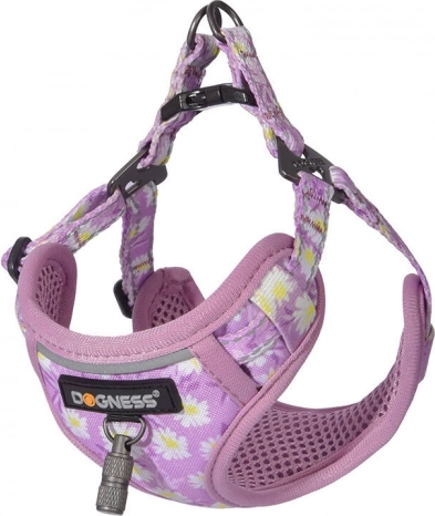 Zestaw spacerowy DOGNESS został zaprojektowany z myślą o wygodnych, bezpiecznych i stylowych spacerach. Szelki z oddychającej siateczki wygodnie leżą i równomiernie rozkładają nacisk, natomiast wytrzymałe nylonowe paski gwarantują długą żywotność. Metalowe elementy ze stopu cynku trzymają pewnie i niezawodnie.