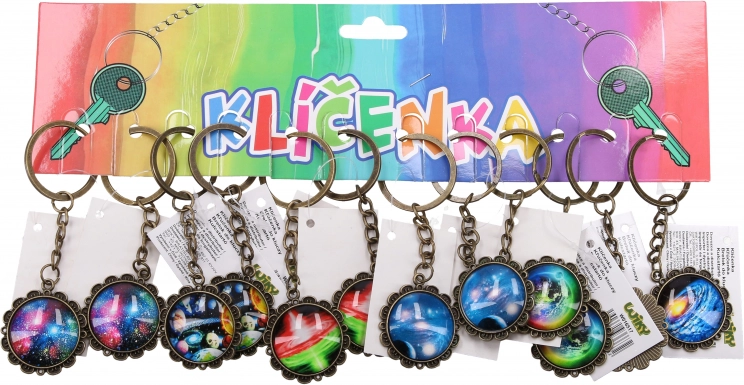 Stylowy okrągły brelok z motywem kosmosu ucieszy miłośników gwiazd i planet. Oferuje oryginalny design, łatwe przypięcie do kluczy lub plecaka i idealnie sprawdzi się jako mały prezent.