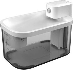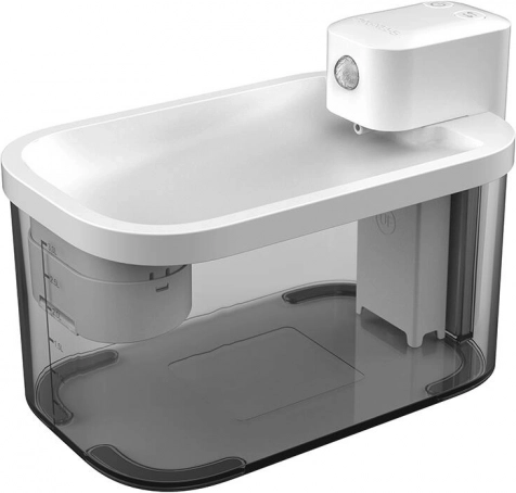 Dzięki wbudowanej baterii 5000 mAh fontanna działa 30–45 dni bez zasilania, więc możesz ją ustawić w dowolnym miejscu. Czujnik ruchu uruchamia strumień wody na 1 minutę po wykryciu pupila w kącie 120°. Przycisk pozwala wybrać tryb Sensor lub tryby czasowe z interwałami co 15 minut lub co 2 godziny. Cicha praca do 30 dB nie zakłóca domowego spokoju, a funkcja Dry Fire Protection chroni pompę przy braku wody.