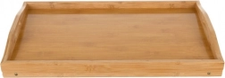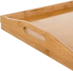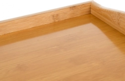 Duża powierzchnia z podwyższonymi krawędziami zapewnia pewność podczas serwowania i pracy na laptopie. Konstrukcja z bambusu wytrzymuje do 5 kg i nie przenosi niepożądanego chwiania.