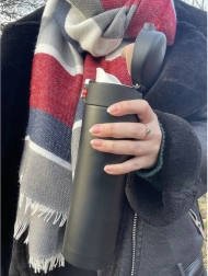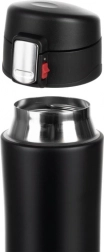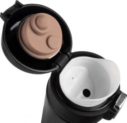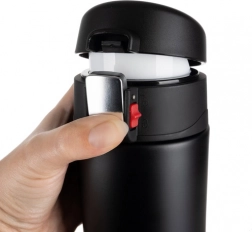 Łatwe otwieranie jednym przyciskiem zapewnia szybki dostęp do napoju, a higieniczny i komfortowy ustnik uprzyjemnia picie w drodze. Termokubek wykonano z bezpiecznych materiałów (stal nierdzewna i PP), jest łatwy w czyszczeniu, a dzięki uniwersalnym wymiarom pasuje do większości uchwytów samochodowych.