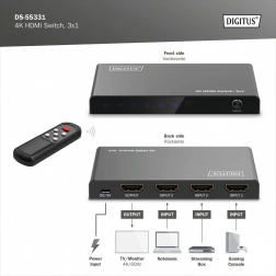Podłącz nawet 3 urządzenia do jednego złącza HDMI telewizora lub monitora i przełączaj się między nimi bez żonglowania kablami.