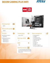 Gamingowa płyta główna MSI B650M Gaming Plus WiFi została zaprojektowana dla procesorów AMD Ryzen z serii 8000/7000, dzięki czemu zapewnia imponującą wydajność w komputerach stacjonarnych. Wspiera pamięci DDR5 o częstotliwości do 7200+(OC) MHz, co gwarantuje szybkie i efektywne działanie w systemach wymagających dużej przepustowości pamięci. Dzięki ulepszonej konstrukcji zasilania 10+2+1 Duet Rail oraz podwójnym 8-pinowym złączom jest gotowa na najbardziej wymagające zadania.