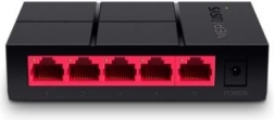 Mercusys MS105G to niezawodny 5‑portowy gigabitowy switch, który łatwo doda więcej gniazd sieciowych dla komputerów, smart TV, konsol czy NAS. Dzięki automatycznej negocjacji prędkości i Auto MDI/MDIX podłączysz dowolne urządzenie bez specjalnych kabli.