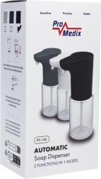 Zachowaj czystość i wygodę z bezdotykowym dozownikiem PROMEDIX, który dzięki czułemu czujnikowi IR automatycznie poda precyzyjnie odmierzona ilość płynu. Sprawdzi się do mydeł w płynie, żeli i roztworów dezynfekujących, żeli pod prysznic oraz szamponów. Eleganckie czarne wykończenie pasuje do nowoczesnych wnętrz, a przezroczysty pojemnik ułatwia kontrolę poziomu napełnienia.