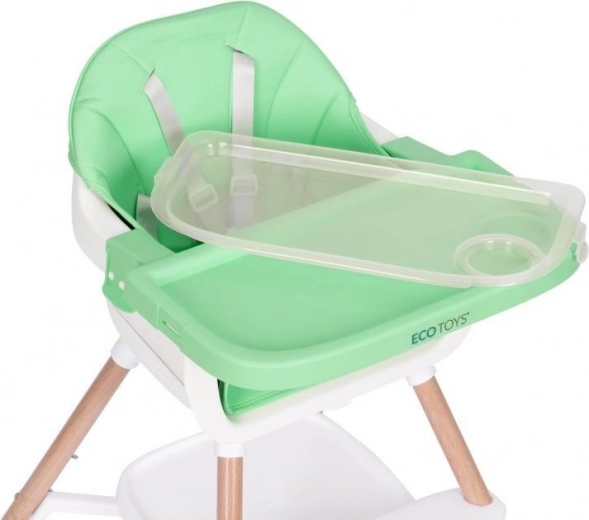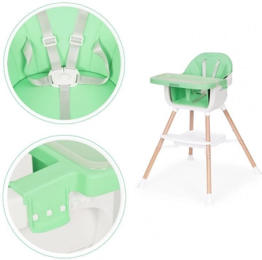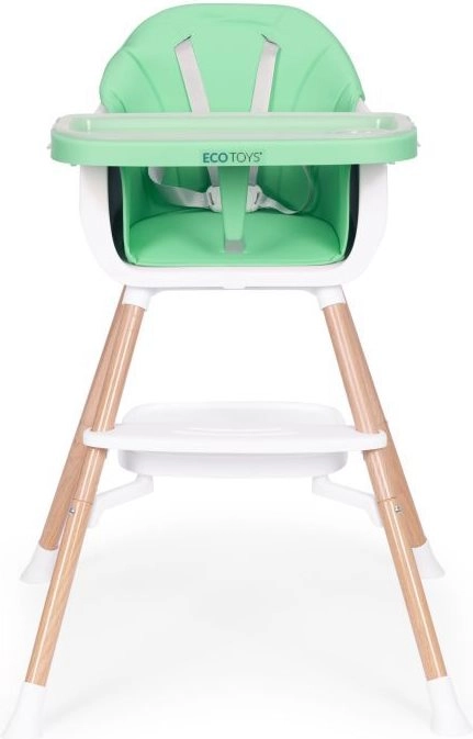 Praktyczne dziecięce krzesełko do karmienia 2w1 marki ECOTOYS łączy wysokie krzesełko i samodzielną nakładkę na zwykłe krzesło. Oferuje stabilną konstrukcję z metalowymi nogami, łatwy w czyszczeniu podwójny blat nadający się do zmywarki, 5‑punktowe pasy bezpieczeństwa, antypoślizgowe końcówki oraz podnóżek. Idealne dla dzieci od 6 do 36 miesięcy o udźwigu 20 kg.
