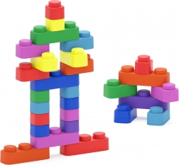 W opakowaniu znajdziesz kombinację jednobloków, dwubloków i trójbloków, dzięki którym można budować proste i bardziej złożone kształty. Materiał jest miękki i bezpieczny, odpowiedni dla młodszych dzieci oraz do użytku w domu i w przedszkolu.