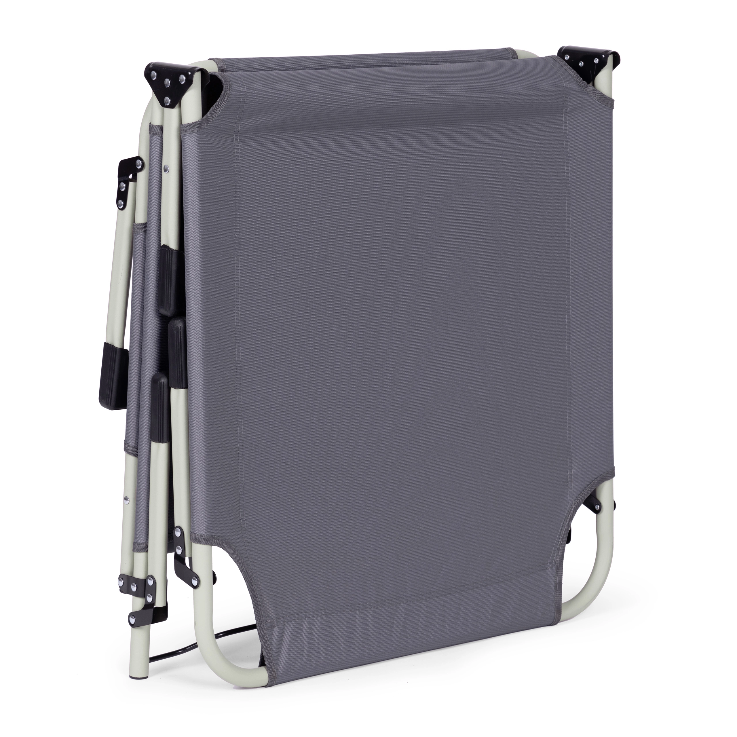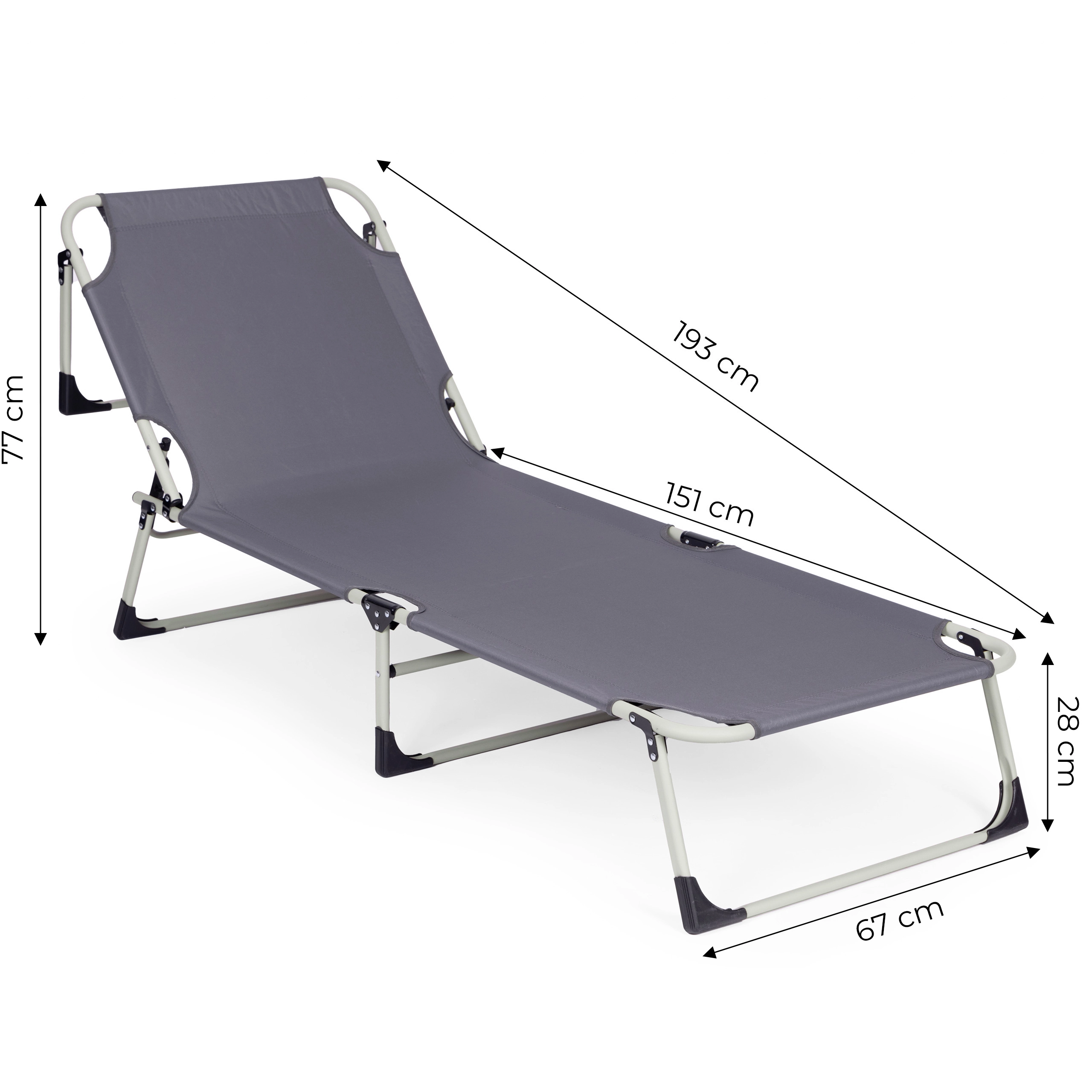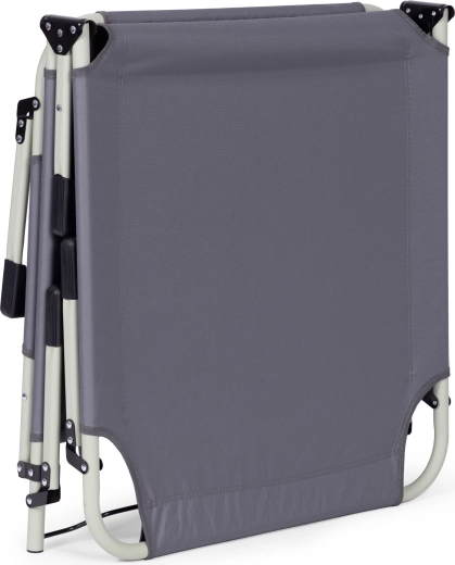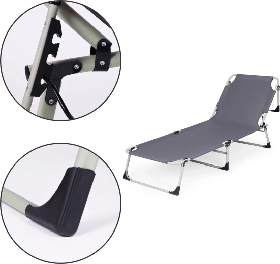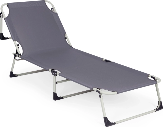 Praktyczny leżak z regulacją w uniwersalnym szarym kolorze stworzony jest do relaksu nad wodą, w ogrodzie i w podróży. Grubo wyściełany materac oraz odpinana poduszka podnoszą komfort przy dłuższym siedzeniu lub leżeniu, a regulowane oparcie pleców w 4 kątach pozwala szybko przejść z pozycji relaksacyjnej do pełnego leżenia.