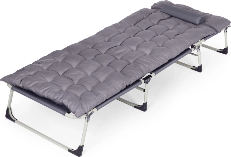 Wytrzymała rama z malowanego proszkowo metalu oraz antypoślizgowe stopki zapewniają stabilność na różnych nawierzchniach. Pokrycie z materiału Oxford 600D jest łatwe w pielęgnacji i gotowe do użytkowania na zewnątrz. Dzięki składanej konstrukcji leżak szybko złożysz, przechowasz lub przewieziesz.