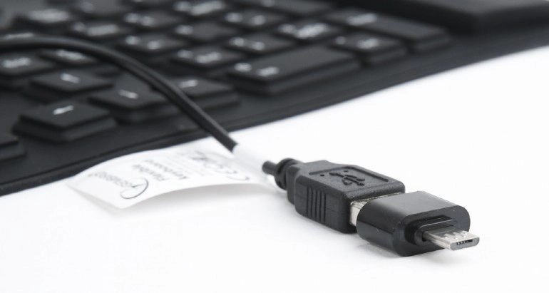 Ta czarna, wodoodporna silikonowa klawiatura to idealne rozwiązanie dla osób potrzebujących kompaktowego, elastycznego urządzenia do użytku w podróży. Dzięki dołączonemu adapterowi OTG oferuje uniwersalne podłączenie do różnych urządzeń.