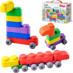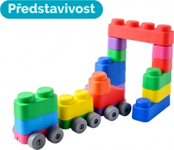 Odkryj nieskończone możliwości zabawy z tą miękką zabawką Far Far Land, która zawiera 25 kolorowych klocków i 16 kółek, wszystko wykonane z bezpiecznego materiału.