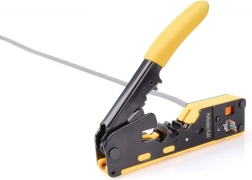 Zwiększ produktywność podczas montażu sieci dzięki uniwersalnym szczypcom zaciskowym DIGITUS do przelotowych złączy. Oferują zaciskanie RJ45 (kat. 5e/6), RJ12 i RJ11, zintegrowane cięcie kabli oraz ściąganie izolacji. Dzięki ergonomicznej konstrukcji, precyzyjnemu dociskowi styków i wytrzymałej budowie zapewniają stabilne i niezawodne połączenia przy każdej instalacji.