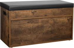 Drewniana ławka na buty w stylu loft oferuje nowoczesny wygląd i praktyczność w jednym. Wykonana z płyty wiórowej, posiada miękkie, czarne siedzisko na górze, które można łatwo zdjąć dzięki rzepom. Poniżej znajduje się wystarczająco dużo miejsca do przechowywania kapci lub drobnych ubrań, takich jak czapki, szaliki lub rękawice.