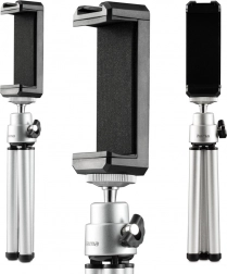 Mini statyw Hama Fancy 2w1 to uniwersalne narzędzie odpowiednie do fotografowania i nagrywania filmów. Praktyczny uchwyt telefonu umożliwia szybkie zmiany urządzeń i jest kompatybilny zarówno z telefonami, jak i z aparatami dzięki śrubie 1/4''.
