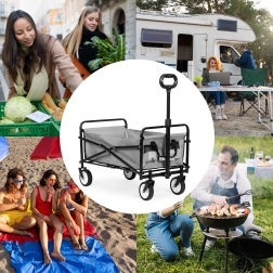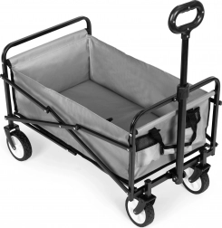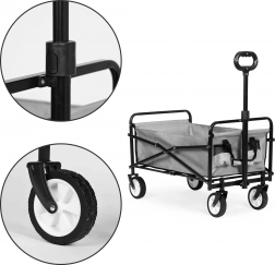 Ten praktyczny wózek ułatwi twoją pracę w ogrodzie i transport zakupów. Jego funkcje docenią także miłośnicy plaż. Wygodny uchwyt, składany design i solidna stalowa rama czynią ten wózek niezbędnym pomocnikiem.