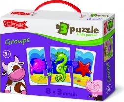 Zestawy Far Far Land puzzle trójki oferują wspaniały świat pełen kolorowych obrazków. Każdy zestaw zawiera 8 unikalnych ilustracji, z których każda składa się z 3 elementów. Te puzzle wspierają nie tylko kreatywność dzieci, ale także ich umiejętność łączenia i rozróżniania różnych obiektów.