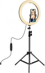- Okrągłe światło LED, statyw, głowica kulowa, uchwyt na telefon, torba transportowa