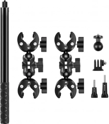 Klamra uchwytu obsługuje kierownice lub rurki o średnicy od 1,5 do 4,5 cm, co czyni go uniwersalnym i odpowiednim dla różnych typów pojazdów. Uniwersalna konstrukcja głowicy kulowej pozwala na ustawienie różnych kątów ujęcia, dzięki czemu możesz dopasować pozycję kamery i bezproblemowo uchwycić dynamiczne momenty.