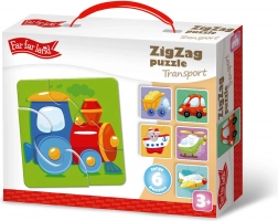 Daleki Daleki Ląd Puzzle ZigZag wprowadza zabawny motyw transportu z sześcioma pięknie kolorowymi obrazkami. Specjalne kręte cięcie zapewnia, że gra będzie jeszcze bardziej zabawna oraz rozwija dziecięcą logikę i zdolności motoryczne.