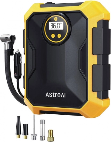 Praktyczny kompresor ASTROAI 12V został zaprojektowany do szybkiego i precyzyjnego pompowania opon samochodowych, rowerowych, pił sportowych oraz materacy. Cyfrowy wyświetlacz umożliwia kontrolę ciśnienia w czasie rzeczywistym i wybór wielu jednostek. Dzięki kompaktowym wymiarom oraz zintegrowanemu schowkowi na końcówki całe wyposażenie masz zawsze pod ręką.