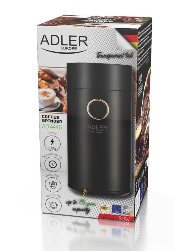 Elektryczny młynek do kawy Adler Europe AD 4446 to doskonały pomocnik do przygotowania świeżo mielonej kawy. Dzięki pojemności 75 g pozwala zmielić idealną ilość kawy bez utraty zapachu. Wyposażony jest w pokrywkę, która zatrzymuje aromat i sprawia, że zmielonej kawy wystarczy dla kilku osób. Maksymalna moc 150 W gwarantuje szybkie i skuteczne mielenie, więc nie będziesz długo czekać na ulubioną kawę.