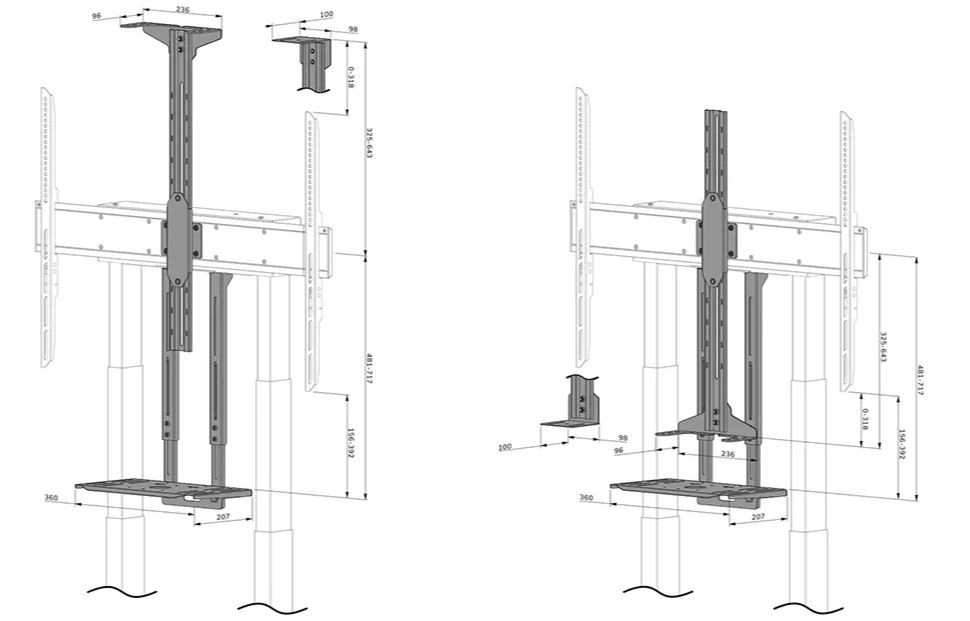 Możliwość montażu półek nad lub pod ekranem, z regulacją wysokości według potrzeb.