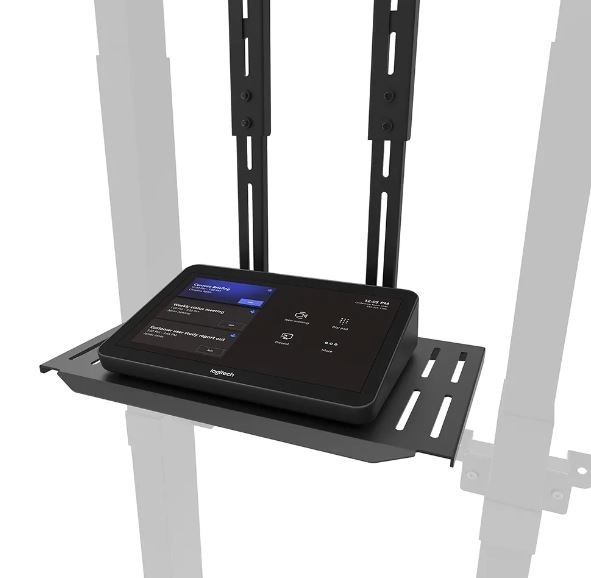 Praktyczna zmienność: Półkę można przymocować zarówno od frontu, jak i od tyłu uchwytu, dzięki czemu zestaw jest elastycznym rozwiązaniem do wszelkiego typu instalacji. Zawiera adapter do Logitech Rally Bar i Rally Bar Mini, co sprawia, że idealnie nadaje się do profesjonalnych wideokonferencji.