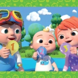 Wielkoformatowe podłogowe puzzle z lubianym motywem COCOMELON zachwycą dzieci wyrazistymi kolorami i wygodnymi, większymi elementami. Po ułożeniu powstaje solidny obraz o wymiarach 70 × 50 cm, który sprawdzi się zarówno do zabawy, jak i do wyeksponowania.