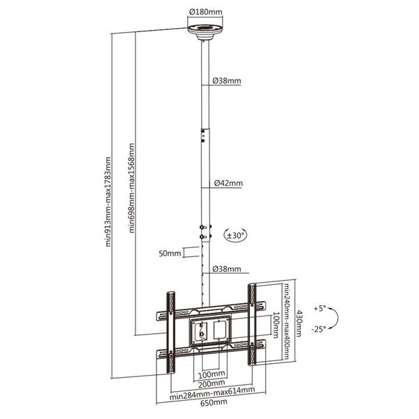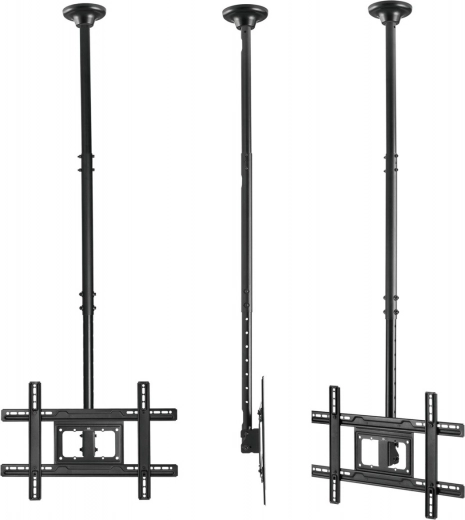 Sufitowy uchwyt to świetny wybór do domów, biur i przestrzeni publicznych, gdzie liczy się oszczędność miejsca i maksymalna elastyczność ekspozycji. Solidna metalowa konstrukcja utrzyma do 50 kg, a dzięki kompatybilności z szeroką gamą rozstawów VESA łatwo zamontujesz większość telewizorów OLED, QLED, LED, LCD i plazmowych.