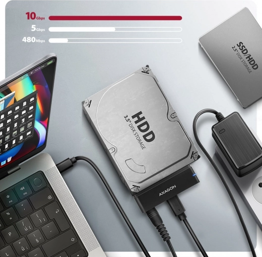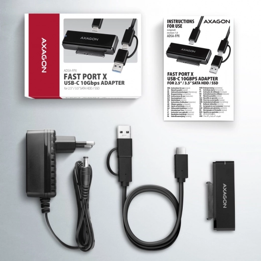 Adapter USB‑C 10Gbps na SATA dla 2.5"/3.5" SSD/HDD FASTPORT X z zasilaczem i kablem 60 cm