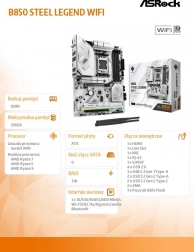 Płyta główna B650 Steel Legend WiFi oferuje solidną konstrukcję z estetyką twardą jak skała, idealną dla codziennych użytkowników i entuzjastów gier. Zapewnia wysoką stabilność i niezawodną wydajność dzięki premium materiałom i komponentom.