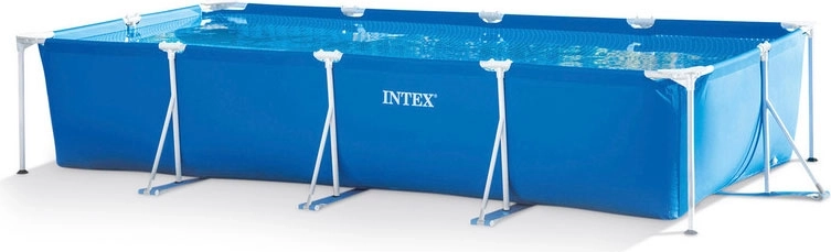Prostokątny basen stelażowy INTEX o wymiarach 450 × 220 × 84 cm oferuje pojemność 7127 l, wytrzymałą 3-warstwową konstrukcję z PVC oraz stalowy stelaż odporny na korozję. Łatwe opróżnianie zapewnia zawór do kontroli przepływu. Wewnętrzna niebiesko-biała mozaika nadaje wodzie krystaliczny wygląd. Idealny do rodzinnego letniego orzeźwienia od 6 lat.