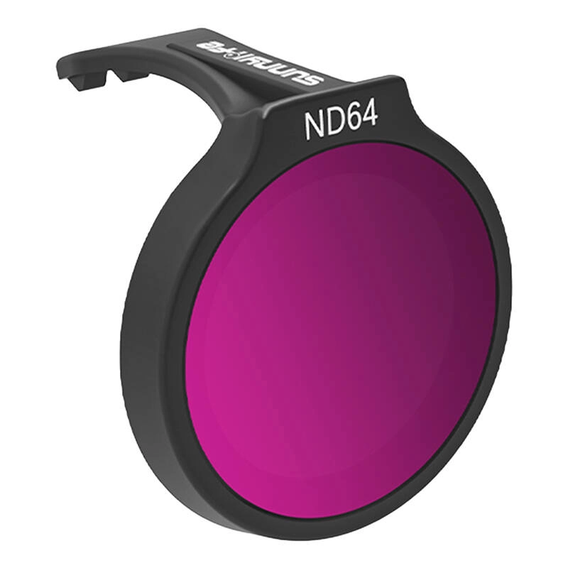 - Filtr ND64: Najbardziej wydajny filtr w zestawie do filmowania w bardzo intensywnym słońcu, zmniejsza światło o sześć działek.