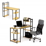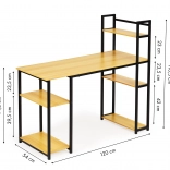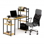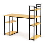 Nowoczesne biurko w stylu loft z obszernym blatem i wytrzymałą, laminowaną powierzchnią. Idealne do biura i domowego gabinetu dzięki konstrukcji z metalu i drewna oraz sześciu funkcjonalnym półkom.