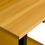 Blat i półki wykonano z płyty MDF pokrytej laminatem, co wpływa na elegancki wygląd oraz odporność na codzienne użytkowanie. Nogi biurka mają ochronne stopki, które chronią podłogę przed uszkodzeniami.