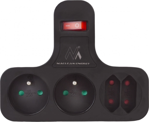 Listwa Maclean Energy zapewnia bezpieczne i efektywne użytkowanie sprzętów elektrycznych. Dzięki czterem gniazdom (2 płaskie i 2 typu Schuko) możesz podłączyć kilka urządzeń jednocześnie i łatwo je kontrolować jednym wyłącznikiem.