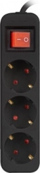 Ten czarny przedłużacz o długości 1,5 metra oferuje trzy gniazda Schuko, idealne do użytku domowego i biurowego.