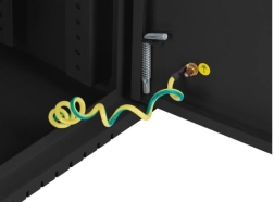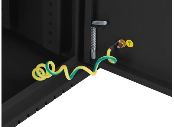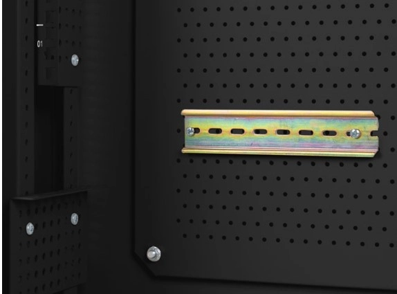 - Bezpieczeństwo i porządek – zamykane drzwi, tylna płyta mesh do śrub M4, w zestawie szyna DIN, przewód uziemiający i kotwy.