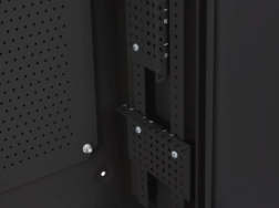 Wnętrze tworzą dwie użyteczne płaszczyzny: 6U dla standardowego montażu 19" oraz dodatkowe 3U do instalacji poziomych lub alternatywnych. Drzwi można otwierać z obu stron dla szybkiego dostępu, tylna płyta oferuje wyłamywane przepusty dla elastycznego prowadzenia kabli, a perforacje w górnym, dolnym i bocznych panelach zapewniają stały przepływ powietrza.