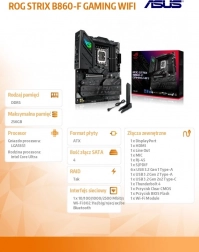 Odkryj nowoczesny design i funkcje płyty ASUS ROG STRIX B860-F GAMING WIFI, które pozwolą wynieść Twój system do gier na nowy poziom.