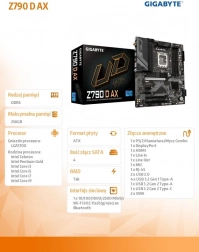 Gigabyte Z790 D AX płyta główna oferuje doskonałą wydajność dzięki cyfrowemu rozwiązaniu VRM w architekturze 12+1+1. Obsługuje dwukanałową pamięć DDR5 z 4x DIMM, co umożliwia optymalizację pamięci z technologią XMP 3.0.